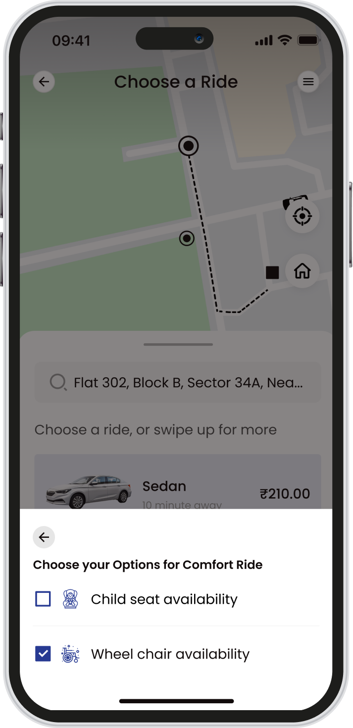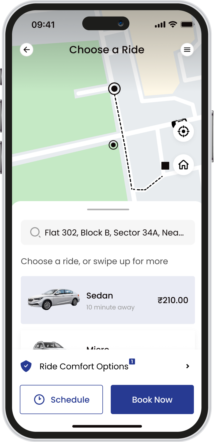 Set your pickup and drop points, select the travel category that suits your needs, and confirm your ride instantly using the app.