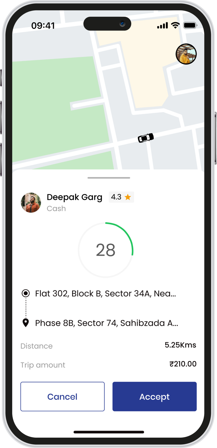 Download our taxi driver app to easily manage rides, optimize routes, and boost earnings. Accept or decline requests with a tap, access real-time navigation, track your earnings, and connect with passengers and support via built-in messaging and calls. Maximize your driving potential and deliver top-notch service with our app.